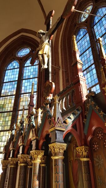 Der Kirchenvorstand der damaligen Gemeinde Geestendorf-Geestemünde entschloss sich, den Architekten und Königlichen Baurat Prof. Conrad Wilhelm Hase aus Hannover mit Planung und Bau der Kirche zu beauftragen. Hase hatte bereits einen bedeutenden Namen als Baumeister neuer Gotteshäuser. Die Bauarbeiten nahmen reichlich drei Jahre in Anspruch, so dass am 14. November 1875 die Einweihung gefeiert werden konnte. Doch zwei Jahre später stellte es sich heraus, dass bei der Errichtung des Helmmauerwerkes des Turms minderwertiger Mörtel verwendet worden war und der Einsturz befürchtet werden musste. Nach Abriss und Wiederaufbau des Turmhelmes war der Bau im Jahre 1880 endgültig vollendet.